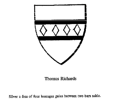 Thomas Richards was by calling a merchant, a "man of note", and dignified by the title of Mister. From the offices he held, it is inferred that he was a member of the church, but for some unknown reason he was not a freeman until 1640. He was a Selectman in 1633; and in 1634 his name is found in the records, when the proprietors "ordered that there be a cartway betwixt the rock and Mr. Richards' house, or else to go through his lot according to a former order." Oct. 6, 1634, the General Court appointed persons to hear and determine the several trespasses done by the swine of several persons in the corn of Thomas Richards. He removed to Weymouth about 1639, where he owned a mill in common with Henry Waltham. He was Selectman for Weymouth in 1643. Thomas Richards died, leaving a good estate to his children and to his wife Wealthian.